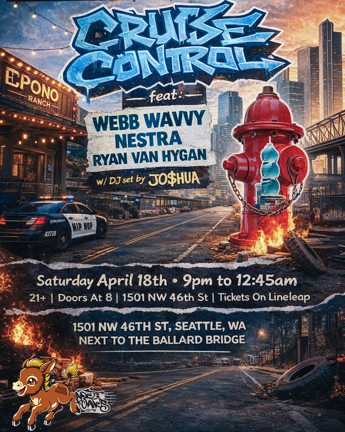 Back to All Events Cruise Control Saturday, April 18, 2026 9:00 PM 11:59 PM Pono Ranch 1501 Northwest 46th Street Seattle, WA, 98107 United States (map) Google Calendar ICS
